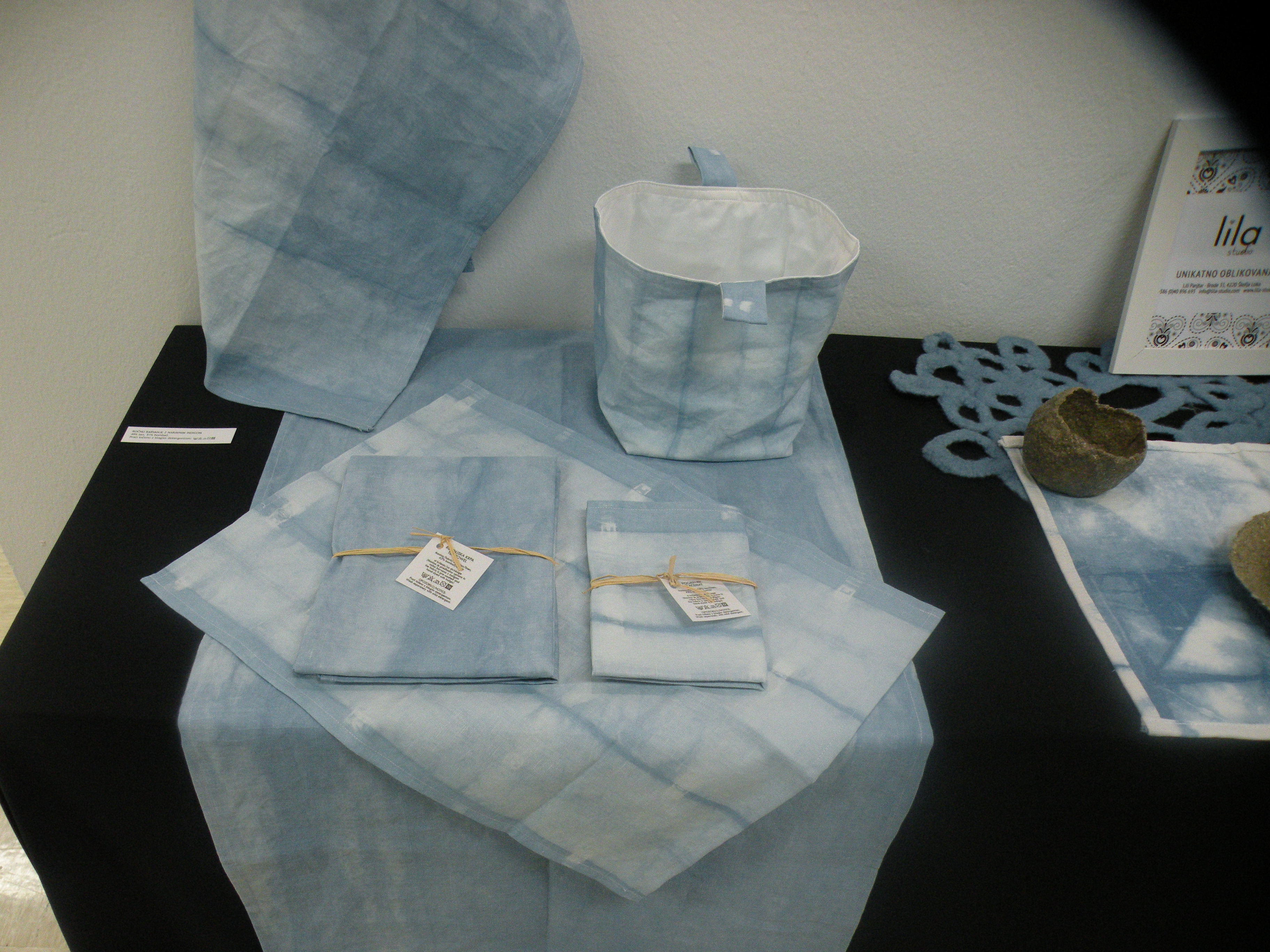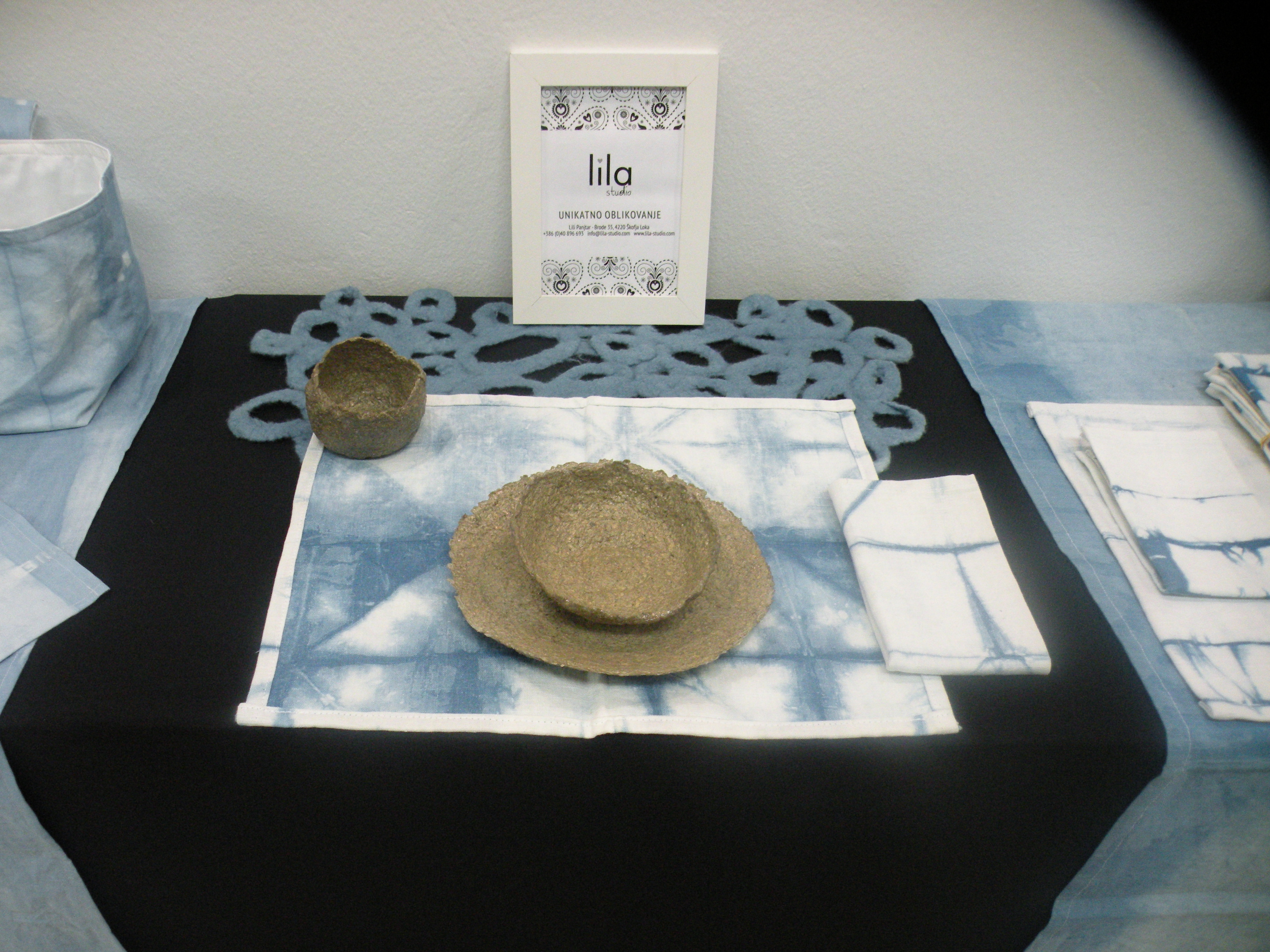 Predstavljam le del svojega ustvarjalnega dela. Lanskoletno samostojno razstavo Ljubo doma sem osvežila in iz Rokodelskega centra DUO Škofja Loka prenesla v drug, večji razstavni prostor. Razstavljam unikate iz naravnih vlaken (celuloza, volna, svila, bombaž, lan, konoplja), izdelane v različnih tehnikah (polstenje, različne tehnike oblikovanja papirja, ročno barvanje z naravnimi barvili).