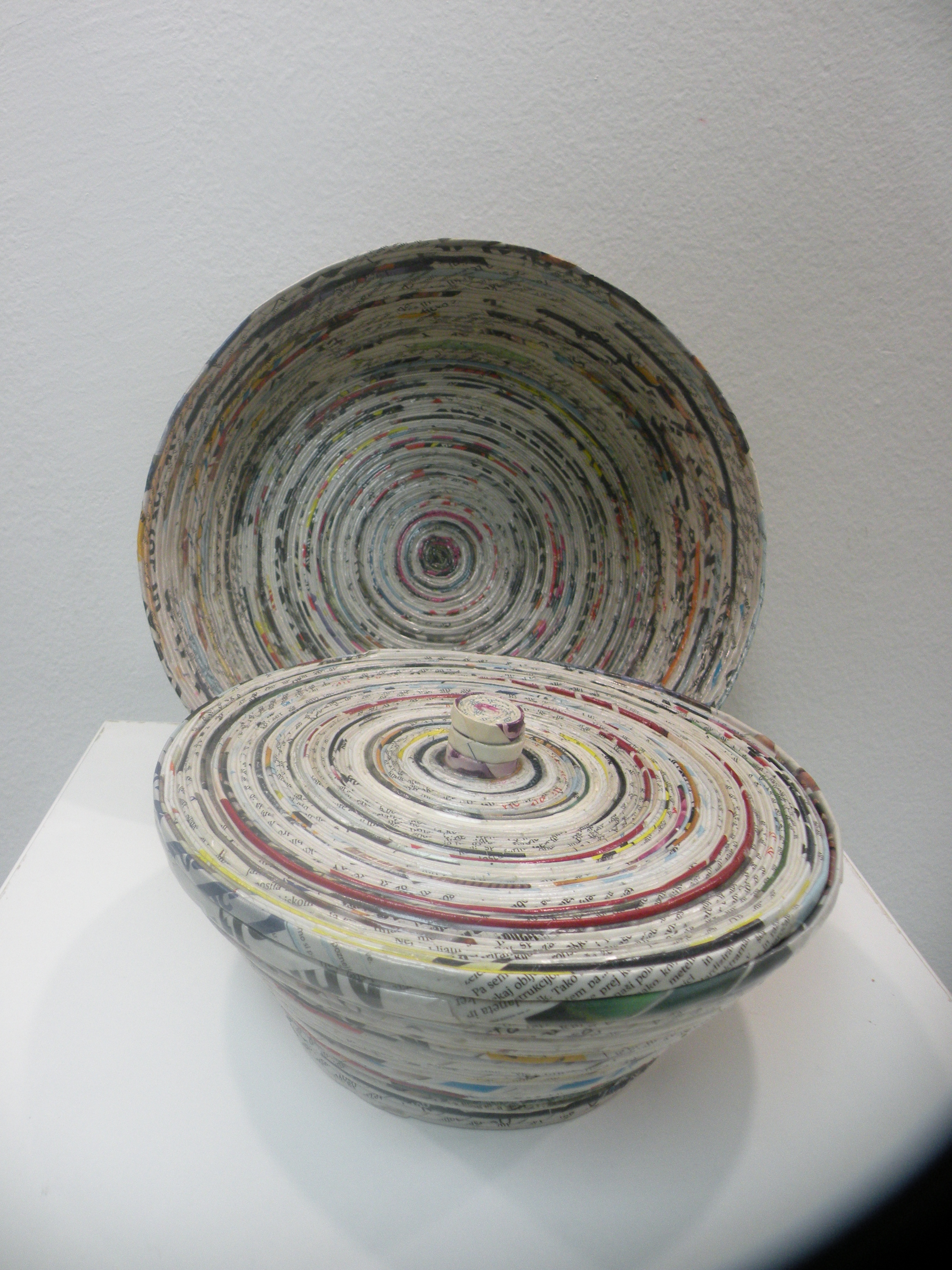 V kontekstu razstave bom vodila tudi specializirano rokodelsko delavnico PISANE POSODE, ki bo trajala približno 3 ure. V tem času bom slušateljem zaupala nekaj osnov o oblikovanju s papirjem in jih naučila bistva ene od tehnik oblikovanja uporabnih posod z reciklažo starega papirja. Z osvojenim znanjem se bodo slušatelji lahko sami lotili zahtevnejših podvigov in urili svoje znanje in spretnosti.
